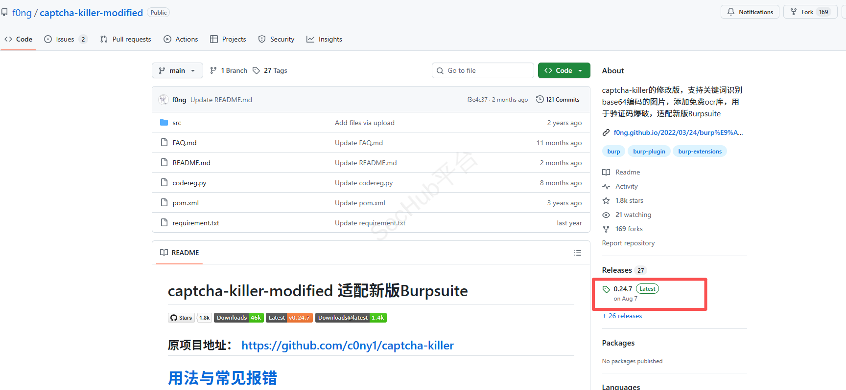 需要下载captcha-killer-modified.jar包和源码