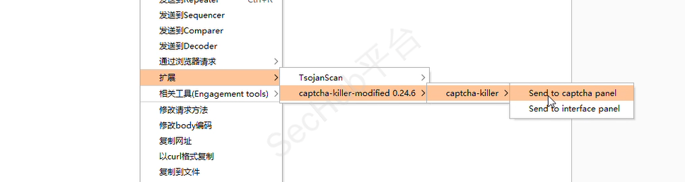 鼠标右键发送至captcha-killer-modified插件: