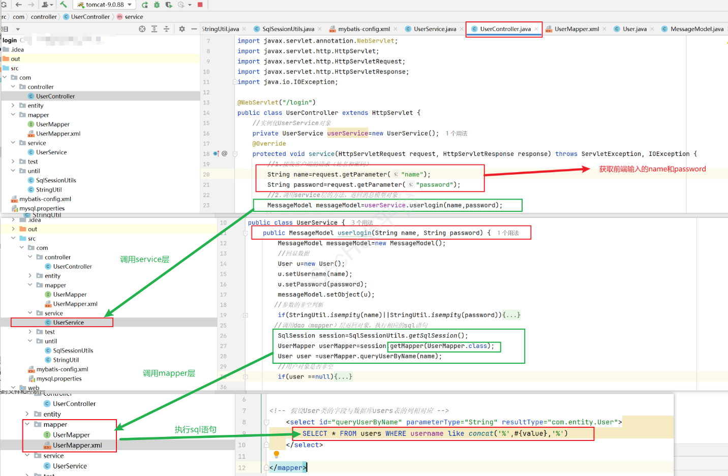 <select id="queryUserByName" parameterType="String" resultType="com.entity.User">